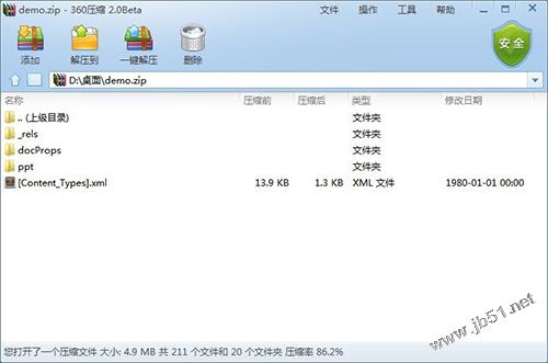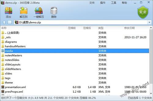 关闭压缩软件,将修改完毕的demo.zip再次重命名为demo.ppt或demo.ppt