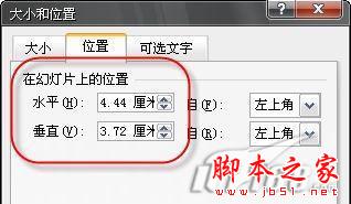 选中做好的扇形,在扇形上点击右键,在弹出的快捷菜单中点击“大小和位置”命令,打开“大小和位置”对话框。记住“位置”选项卡中“水平”和“垂直”输入框中的数据备用,如图3所示。