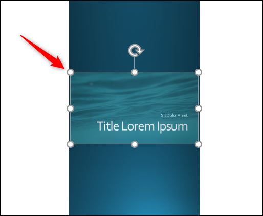 您现在将看到幻灯片已调整大小。但是,主题的主要设计可能不适合整个幻灯片,因此PowerPoint 会用与主题相得益彰的颜色填充额外的空间。如果您选择这样做,您可以通过单击并拖动设计元素每一侧的手柄来用主设计填充这个额外的空间。