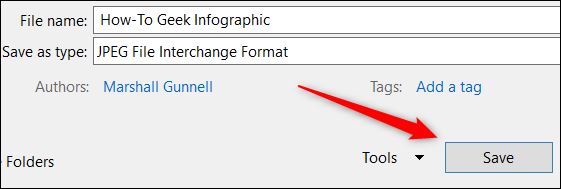 接下来,单击文件> 另存为,然后选择要保存信息图的位置。不过,在单击“保存”之前,您需要更改保存的文件类型。您可以在这五种图像类型之间进行选择: