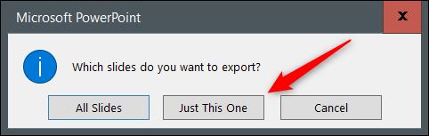将出现一个对话窗口,询问您要导出哪张幻灯片。选择“仅此一张”将所选幻灯片另存为图像。