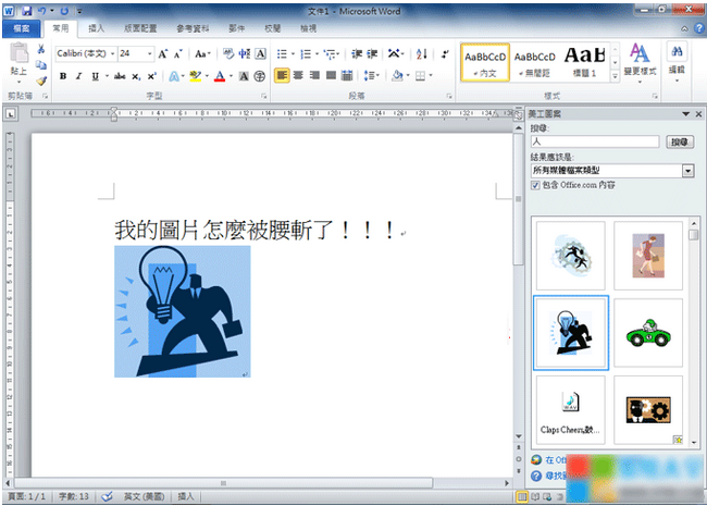 答案就是段落的行距被设定成「固定行高」,所以图片就被切掉了...