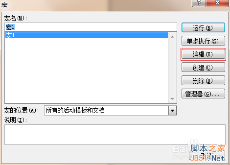 8、选择“宏1”后,点击右侧的编辑