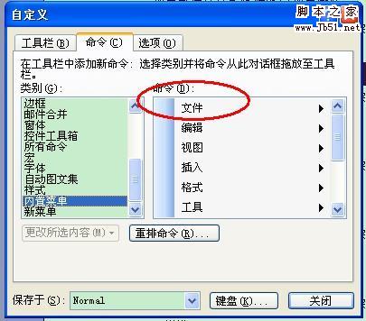 解决方法:在工具栏上右键单击,选自定义,选择命令选项,按住CTRL的同时用鼠标按住文件拖放到菜单栏上,以后就在文件菜单下调用另存为和页面设置,也可用同样的方法把页面设置和另存为放到工具栏上作为快捷调用