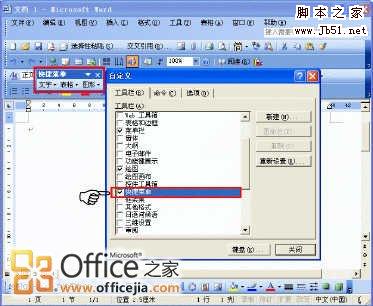 (1)单击“工具→自定义”命令,在打开的“自定义”对话框中选中“工具栏”选项卡。
