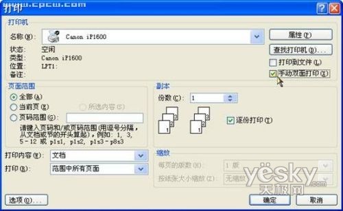 小提示:请一定安装打印机随机提供的驱动光盘,使用Windows提供的默认驱动是不可能有这些特殊打印功能的。在不需要双面打印时还得从在里更改才行。