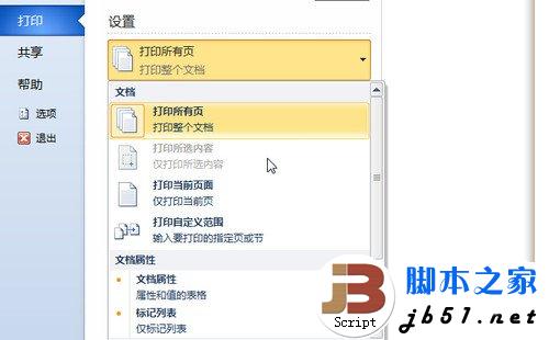 如果你希望在将要打印出来的文档里包含该文档的属性、批注等信息。那就点击Word的“文件”菜单,调出“打印”对话框再点击“选项”。