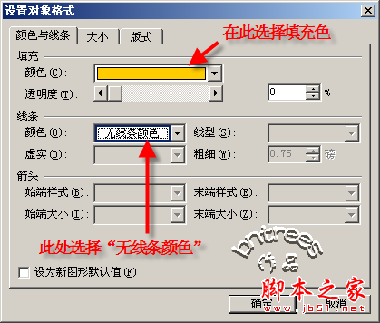 首先,用绘图工具画一个与页面一样大的矩形框,覆盖住整个页面。然后在此矩形框上点击鼠标右键,在右键菜单中选择“设置对象格式”,将对话框中的“填充颜色”设置成你喜欢的颜色(如金黄色),将“线条颜色”设置为“无线条颜色”(图3),点“确定”退出。