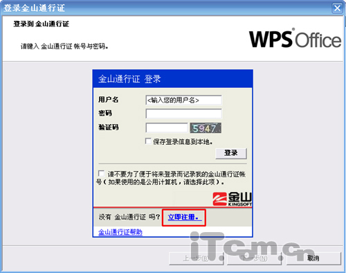 点击“限制权限为“以后,弹出一个金山通行证登陆的窗口,你如果还没有注册,就先点击注册,进入注册的窗口,如果你已经拥有通行证的账户,就可以直接登陆就可以的了,如图6、图7所示: