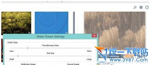 就比如说刚才这张“Spring 2013”仅能打开或禁止蚂蚁显示,但另一张“Water Dream”却可以对水滴出现时间、大小,乃至水纹的多寡进行定义,而这便是DeskScapes8的壁纸自定义功能(静态壁纸没有“Settings”,但会变换为填充方式选择,如居中、平铺、拉伸、适应等等,具体和操作系统是一模一样的)。
