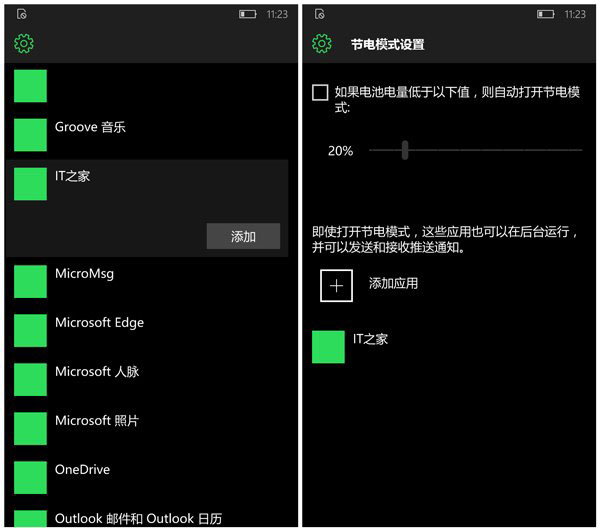 Win10 Mobile预览版10166:用户可批量添加节电模式在后台应用