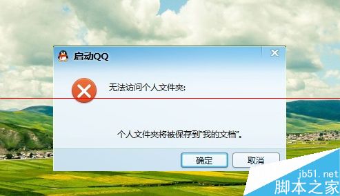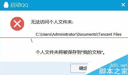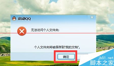 2、此时重新登陆QQ程序,在弹出的“无法访问个人文件夹”窗口中点击“确定”按钮。