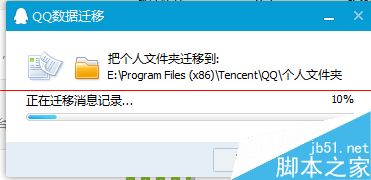 3、最后将弹出“QQ数据迁移”窗口,将“个人文件夹”迁移到指定目录后,就可以正常登陆使用QQ程序啦。