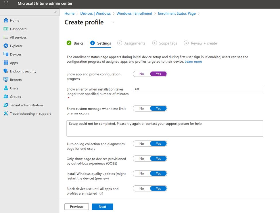 此外,设备必须已加入 Entra(原 Azure AD)或 Entra 混合环境,并配置了带有注册状态页(ESP)配置文件的 Microsoft Intune。同时为确保兼容性,设备还需预装最新的 OOBE 更新(如 2025 年 11 月发布的 KB5065848 等补丁)。
