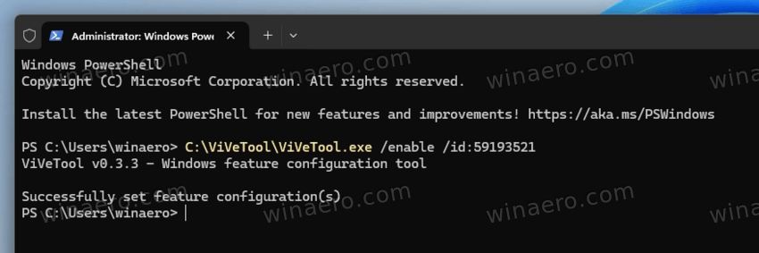 vivetool /enable /id:59193521