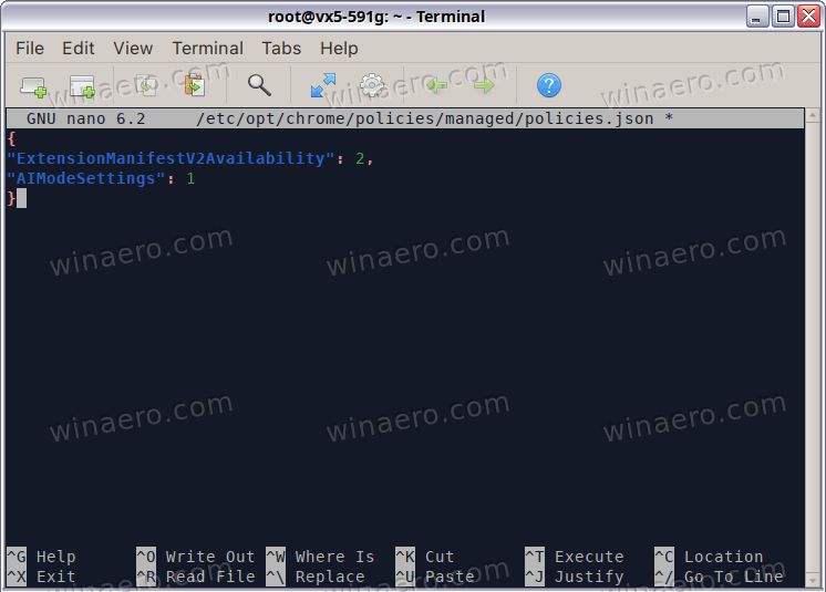 }如果您已经有这样的文件,只需在策略集中最后一个策略后添加逗号,然后在新行中添加 "AIModeSettings": 1 请参见此屏幕截图: