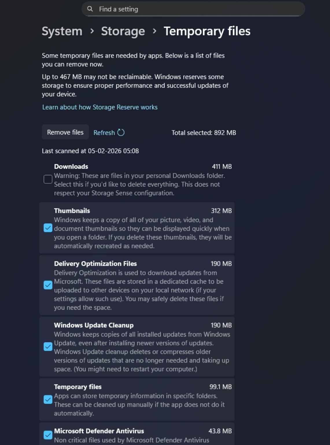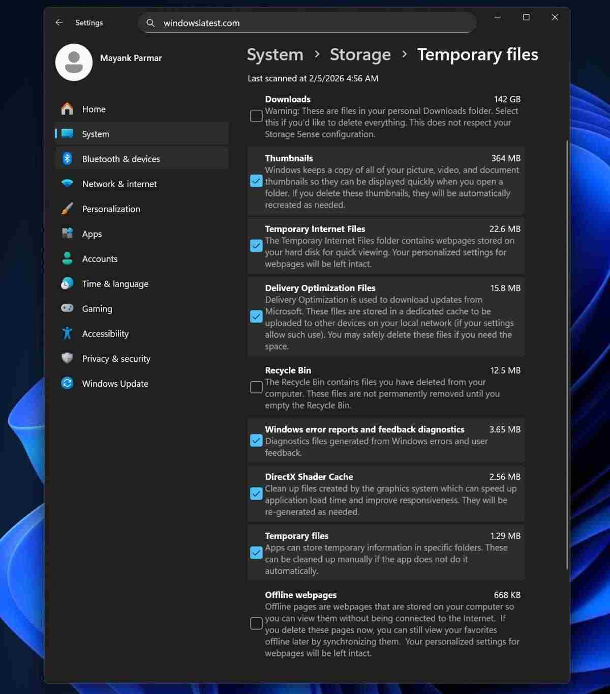科技媒体 Windows Latest 今天(2 月 5 日)发布博文,报道称部分 Windows 11 用户反馈,在安装微软 1 月可选更新 KB5074105 升至 Build 26200.7705 后,导致“临时文件”清理功能出现异常,无法识别并清理 Windows 更新缓存及驱动文件。