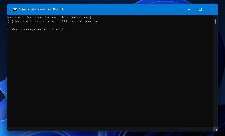 - 输入此CHKDSK扫描命令并按下回车键: chkdsk /r