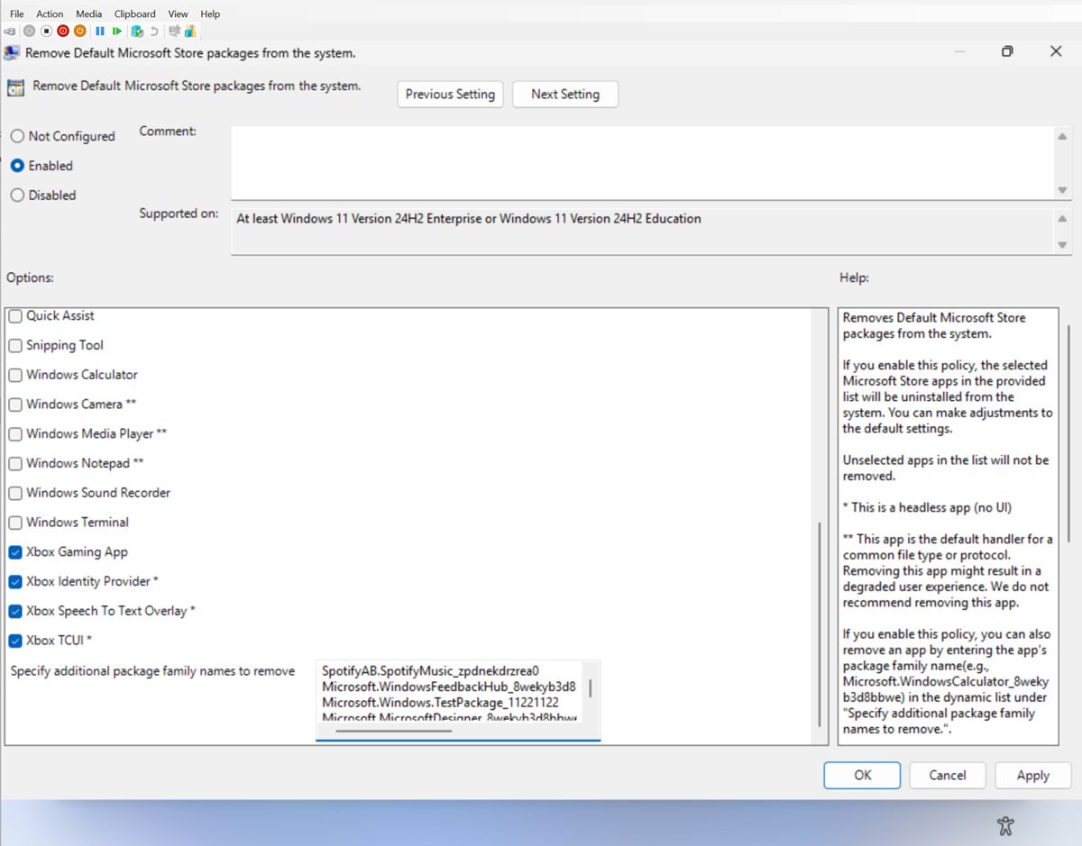 在安全方面,微软在新版本中重构底层逻辑,IT 管理员现可通过配置组策略(Group Policy)中的动态列表,精准移除不需要的 Microsoft Store 预装应用(如 MSIX / APPX 格式包)。