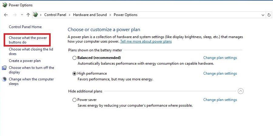- 前往 硬件和声音 > 电源选项 > 选择电源按钮的功能。