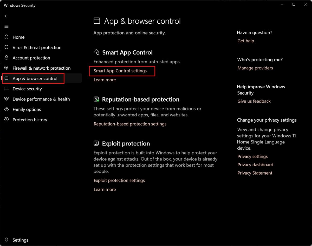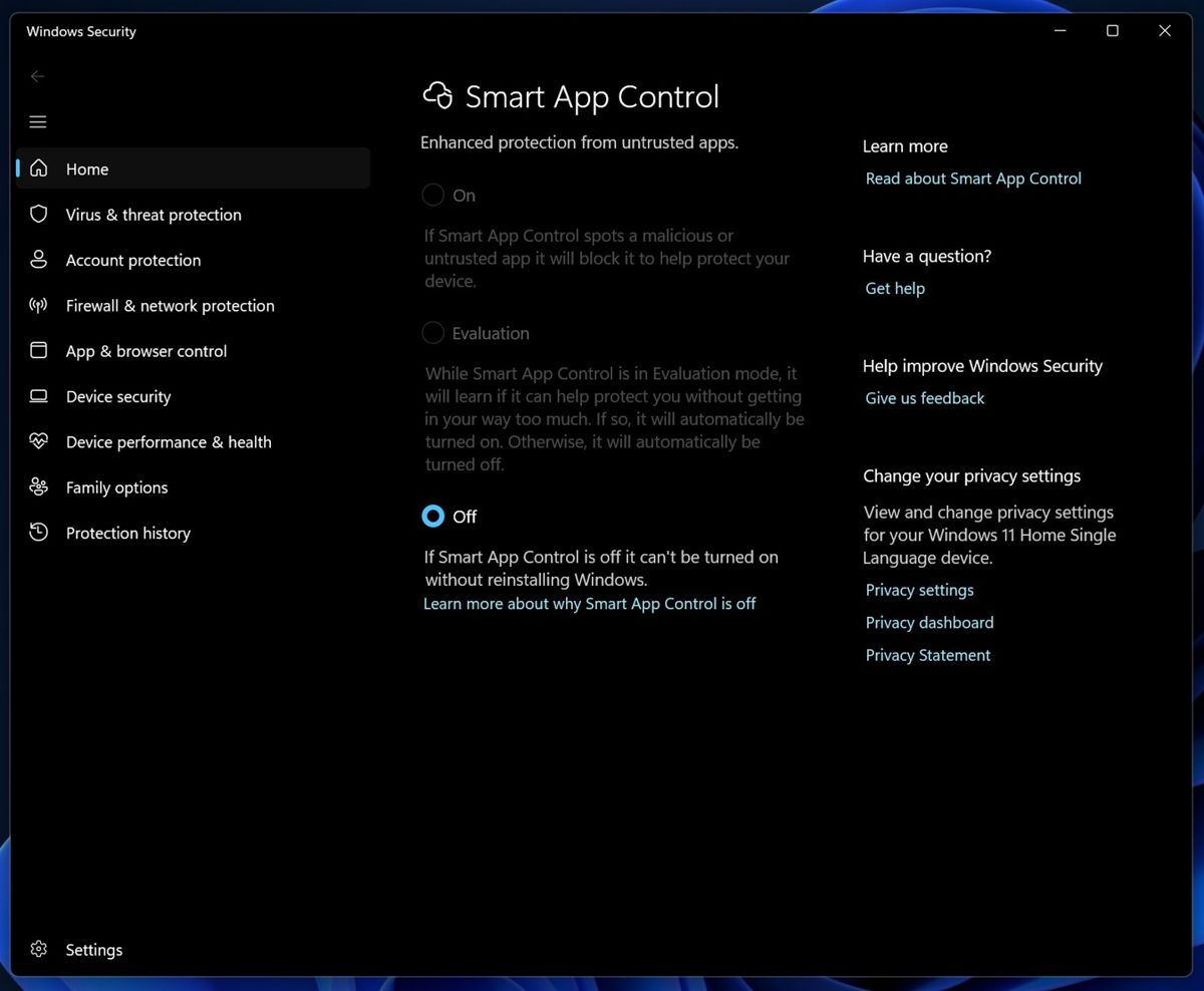 - 智能应用控制(SAC)开关优化:用户现在无需重新安装系统即可启用或禁用智能应用控制功能。该功能旨在帮助阻止不受信任或具有潜在威胁的应用运行。用户可前往“设置” > “Windows 安全中心” > “应用和浏览器控制” > “智能应用控制设置”中进行调整。