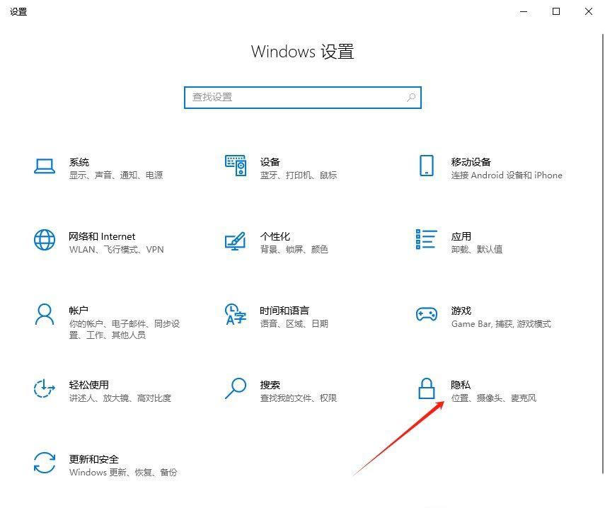 1、首先,按下“Win+i”键打开设置界面,并点击进入其中的“隐私”设置。