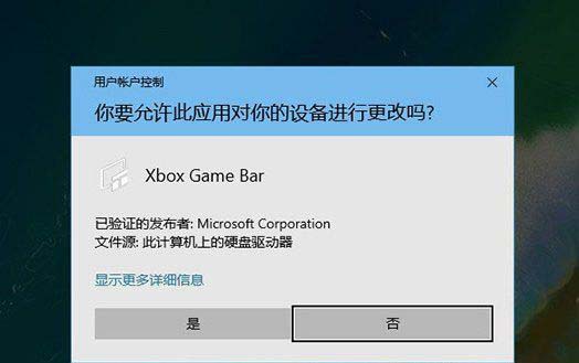 3、Xbox Game Bar(游戏栏)提示的用户账户控制窗口,你要允许此应用对你的设备进行更改吗?点击是即可;