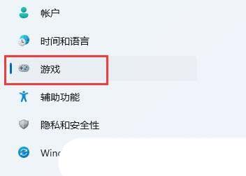 2、系统设置窗口,点击左侧栏的游戏;