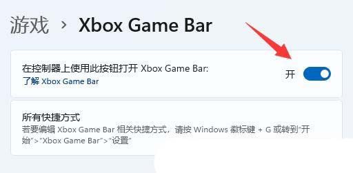 4、当前路径为:游戏 >Xbox Game Bar,将在控制器上使用此按钮打开Xbox Game Bar 开关打开;
