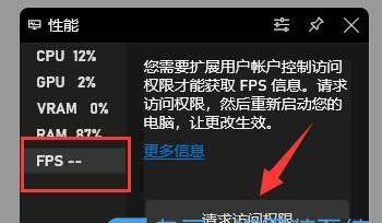 2、性能模块,切换到FPS,然后点击请求访问权限 ;