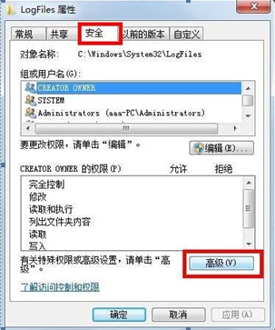 解决方法如下: 第一步 打开“计算机”,找到“C:\Windows\System32\LogFiles”文件夹,单击右键选择“属性”;