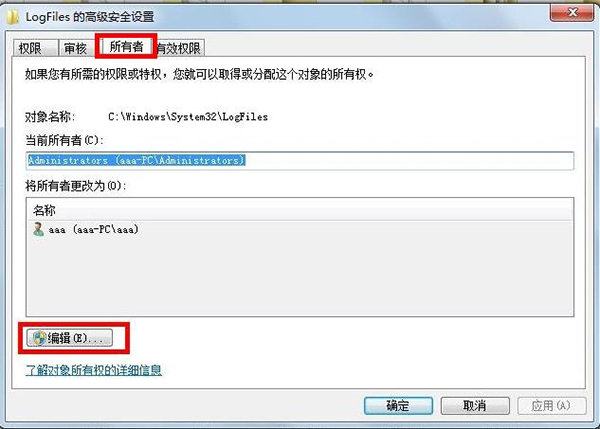 第三步 点击“所有者”选项,选择“编辑”;