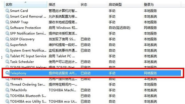 第十步 确认服务“Telephony”处于开启状态,如果未开启,单击右键,选择“启动”;