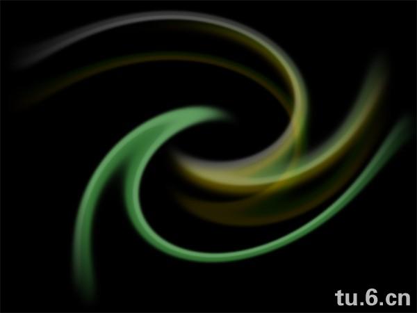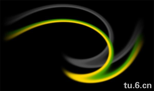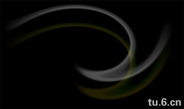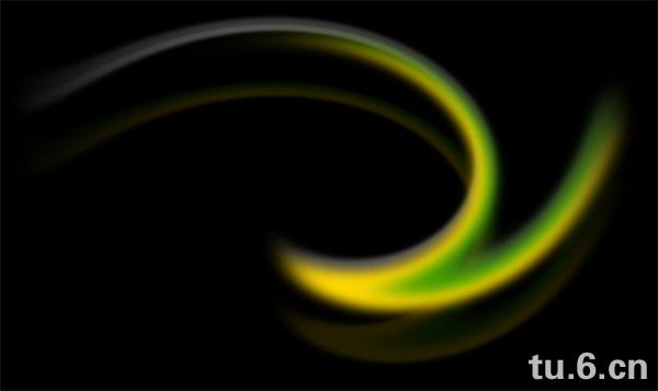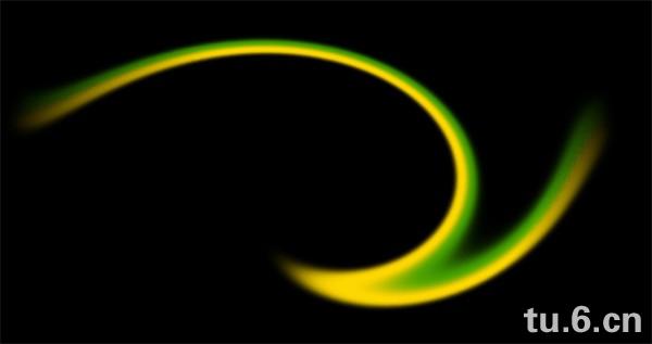 新建800×600像素画布,72dpi,填充背景层为黑色。新建图层命名为“Eavy Energy”。选择35像素的柔边画笔在新图层上用#499E00和#FFD800 色值如下图横画两笔。(译注:位置会影响之后的扭曲,约在画布的1/3处):