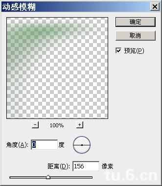 复制刚才的绿色层,对得到的新层使用滤镜->模糊->动感模糊,参数参考如下: