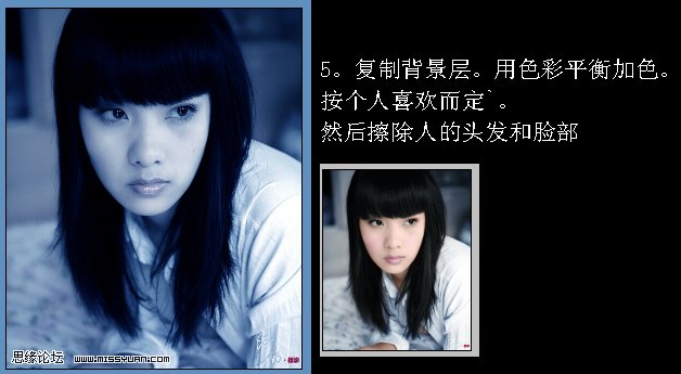 5、复制背景层,按Ctrl + B调整颜色,按个人喜欢调。然后加上图层蒙版用黑色画笔擦除人的头发和脸部。