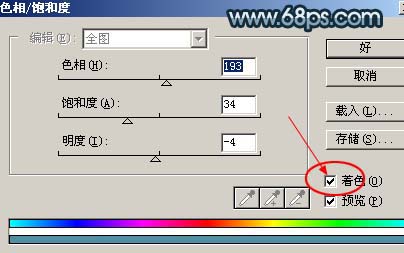 1、打开原图素材,创建色相/饱和度调整图层,参数设置如图1,勾选着色选项,效果如图2。