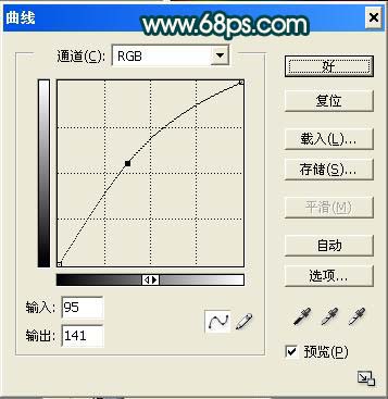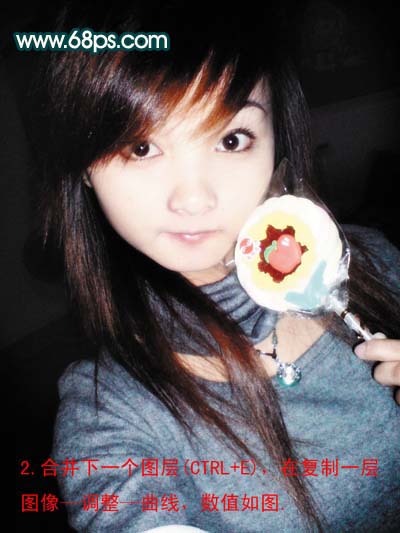 2、合并下一个图层(Ctrl + E),再复制一层,执行:图像 > 调整 > 曲线,参数设置如下图。