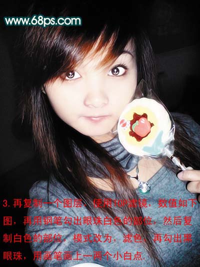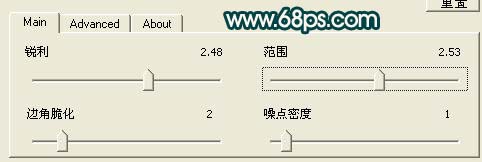 #p# 3、再复制一层图层,适当的用Topaz滤镜锐化一下,参数设置如下图。用钢笔工具抠出眼珠白色的部位,按Ctrl + J复制到新的图层,图层混合陌生感改为“滤色”,抠出黑眼珠,用画笔点上白色反光。