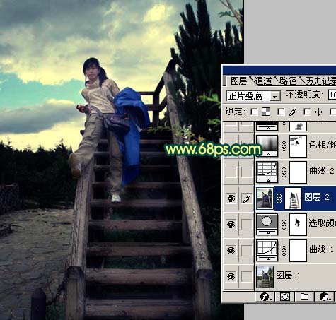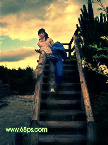 <图5> #p# 3、新建一个图层,按Ctrl + Alt + Shift + E盖印图层,然后把图层混合模式改为“正片叠底”,加上图层蒙版,用黑色画笔把梯子的栏杆及阶梯擦出来,图层参考及效果如下图。