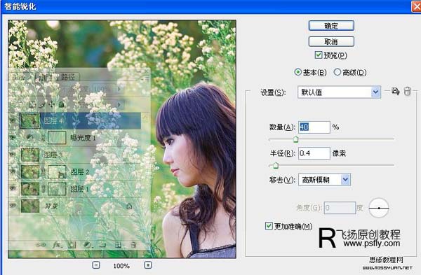 5、盖印可见图层。执行:滤镜-锐化-智能锐化,参数设置如下图。