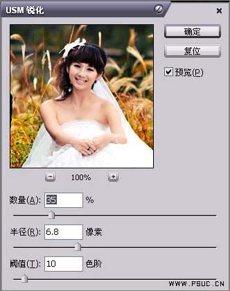 8、新建一个图层,按Ctrl + Alt + Shift + E盖印图层,执行:滤镜 > 锐化 > USM锐化,参数设置如下图,确定后修饰下细节,完成最终效果: