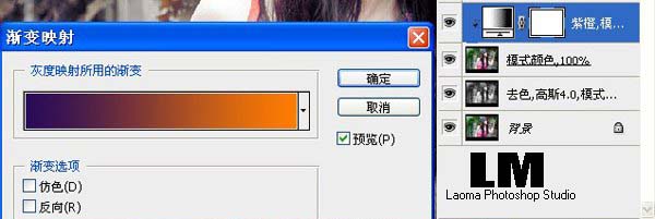 3、创建渐变映射调整图层,参数设置如下图,确定后按Ctrl + G加上剪贴蒙版。
