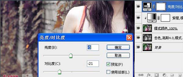 4、创建亮度/对比度调整图层,参数设置如下图。