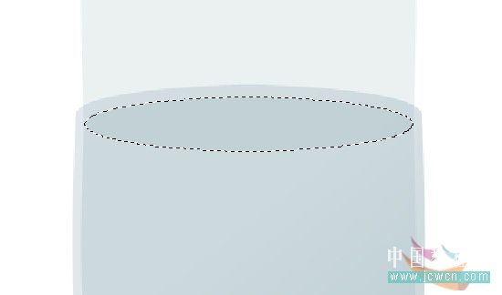 9、选择“杯口”图层,执行——编辑——变换,旋转180度,移动至内层玻璃图层相交处,按住Shift+Ctrl+Alt点击内层玻璃图层,得到如图选区。