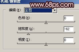 1、打开原图素材,创建色相/饱和度调整图层,适当的把饱和度降低一点,参数设置如图1,效果如图2。