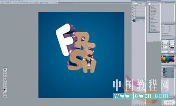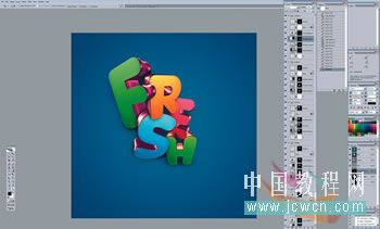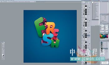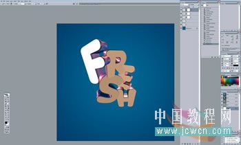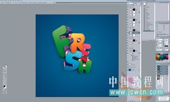 01、从使用3D软件逐一制作单独的字母开始(Nik这里用的是Xara 3D),然后把它们导入一个Photoshop文件里。保持每一个字母单独占一层,把它们按你喜欢的样子挨个层叠摆放。