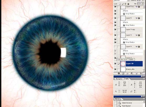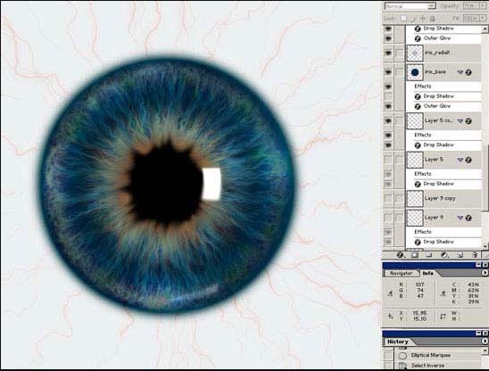 #p# 23、创建其他的层,你将添加一些小的血管,创建一些污点,在白色和瞳孔之间的地方。