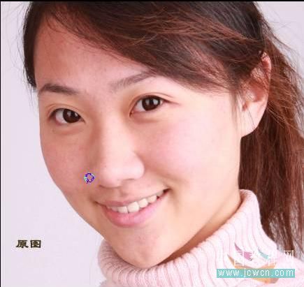 1、打开原始图片,祛痘:使用套索及印章工具随便把大的去掉就行。