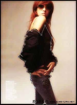 4、使用钢笔工具描绘人物衣服部位(不需太精确)。